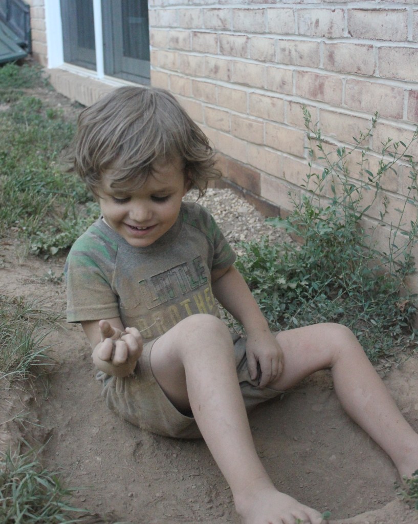 Because of this, we had been outside almost the entire time that day. My husband and I took turns sitting in the yard as Ryan threw fistfuls of sand or dirt into the air.